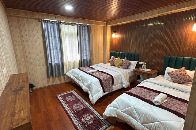 Our Family Rooms at Lotus Inn Blue Pine, Lachung are thoughtfully designed to offer a spacious and comfortable stay for families and groups traveling together. With warm wooden interiors and ample space, these rooms provide a cozy and homely atmosphere, ensuring everyone enjoys a relaxing stay amidst the scenic beauty of the mountains.